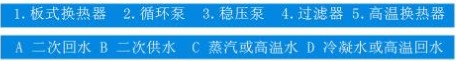 造型说明:用户可根据实际工况按表1-5选型,亦可委托本公司选型型号表示. 本机组为汽-水。水-水换热 设备,广泛应用于采暖,空调及热水供应