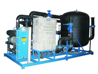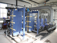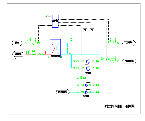 功能与特点:◆换热效率高,结构紧凑,简化工程设计。缩短工程周期,降低工程造价本机采用国内优质板式换热器。双泵输送循环(——台备用),单泵补水稳压力。150度以上蒸汽采用二级换热或全焊板式换热器整个系统自动控制,属机电一体化技术产品◆ 实现了整体换热机组的全自动控制,无需人员值守 ◆ 参考室内外温度实现二次网循环水温度自动调节,保证供热要求 ◆ 依据温度及压力信号,自动完成循环泵、补水泵的变频,可自动实现循环泵及补水泵变频切换(两台循环泵或两台补水泵),变频与工频自动切换 ◆ 根据液味及压力信号,自动完成补水及排水控制,无需设置膨胀水箱。根据工况要求,可自动实现变负荷采暖、空调、热水供应和不同时段、节假日节能态设定 ◆ 系统具有停电保护,自动切断一次热源,来电自动启车功能 ◆ 通过触摸屏,该微机系统具有良好的人机界面,可显示完整的系统流程、设备状态及各种参数。并可远程通讯到上一级PC机,也可以单独不联网就地控制 ◆ 有编程功能、远程通讯接口。可编程,可修设设备。能实现局域网控制,即一台PC机监控多台换热机组。也可与公众网联合