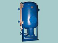 当压力较高的凝结水从管道输出,进入压力较低的密闭容器时,它会生成压力较低的凝结水和压力较低的水蒸气。而这一形态的改变,能量始终相等。 密闭式凝结水回收装置遵循能力守恒原理运行。 密闭式凝结水回收装置运行时,凝结水从用热(蒸汽)设备排出,经疏水器进入回水器。 回水器是MB型凝结水回收装置的主要组成设备,它内部装设了过滤器,降压消声器、水泵防汽蚀装置、压力封闭装置等部件。其外部结构如图形所示。 当凝结水回水压力P>0.3MPa时,进入回水器的凝结水先进入过滤器,降压消声器,压力降到设定值后再进入回水器与其它凝结水混合。 压力较高的凝结水进入回水器,由于压力骤降,发生闪蒸,生成压力较低的凝结水和闪蒸汽。凝结水汇集于回水器下部,闪蒸汽聚集于回水器上部。 汇集于咽水器下部的凝结水经水泵防汽蚀装置进入凝结水泵。加压后进入射水抽汽器,引射聚集于回水器上部的二次闪蒸汽。 在射水抽汽器内,汽水混合,压力升高,闪蒸汽冷凝,放出冷凝热加热水泵送出的凝结水,合闪蒸汽放出的冷凝热得以回收。水泵送出的凝结水被加热,进入除氧器与软化水混合共同除氧后由除氧给水泵送入锅炉。至此,用热(蒸汽)设备排出的凝结水得以回收利用 |