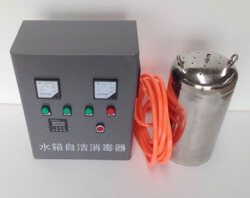 水箱自洁消毒器工作原理:首先将自洁消毒器的循环水缸置于水箱的中下部,以保证水箱的水循环均匀。当水位达到液位计设定的高水位时,电控柜开始启动高压电源和潜水泵所产生的强氧化气体经管路,至曝气部分;对水进行曝气消毒,同时,潜水泵将经过消毒的水送回水箱,使停滞的水循环起来,如此循环下去,对水彻底的消毒,保证了水的质量。产品出厂前,已将时间设定好,用户无需再设定。