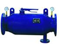 设备结构与工作原理 自动排污过滤器主要由优质碳钢筒体、特殊结构的不锈钢楔形滤网、水流导向阀及排污装置所组成。当过滤器工作时,水流导向阀处于开启状态,水流由入口进入过滤器,经过滤网过滤到出口。当过滤器需要排污时,关闭水流导向阀,打开排污阀,水流经滤网前半段过滤,部分水流由出口流入系统,剩余水流由滤网后半段外侧流入内侧,经排污口排出,起到反向自动冲洗滤网的作用,这样整个冲洗过程系统可正常运行,无需停机。 水流导向阀的开启机构分手动和电动两种,当采用电动开启机构时,设有时钟控制电控箱,可按设定时间要求实现自动清洗排污,此时排污口装电动球阀、水流导向阀和排污电动球阀实现联动。